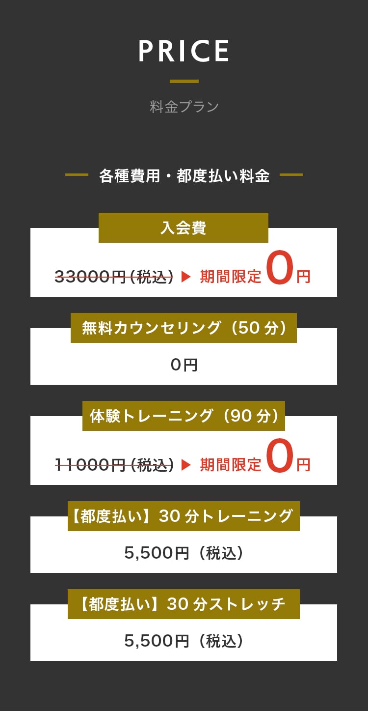 | 【都度払い】30分ストレッチ | 5,500円 |