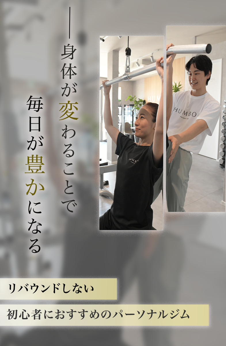 全く問題ございません!運動が苦手/未経験だからこそ、始めはパーソナルトレーニングを受けることをお勧めします。ダイエット/ボディメイクのプロであるパーソナルジムHUMBOLのトレーナーが徹底的に寄り添い、理想の身体を実現します。
